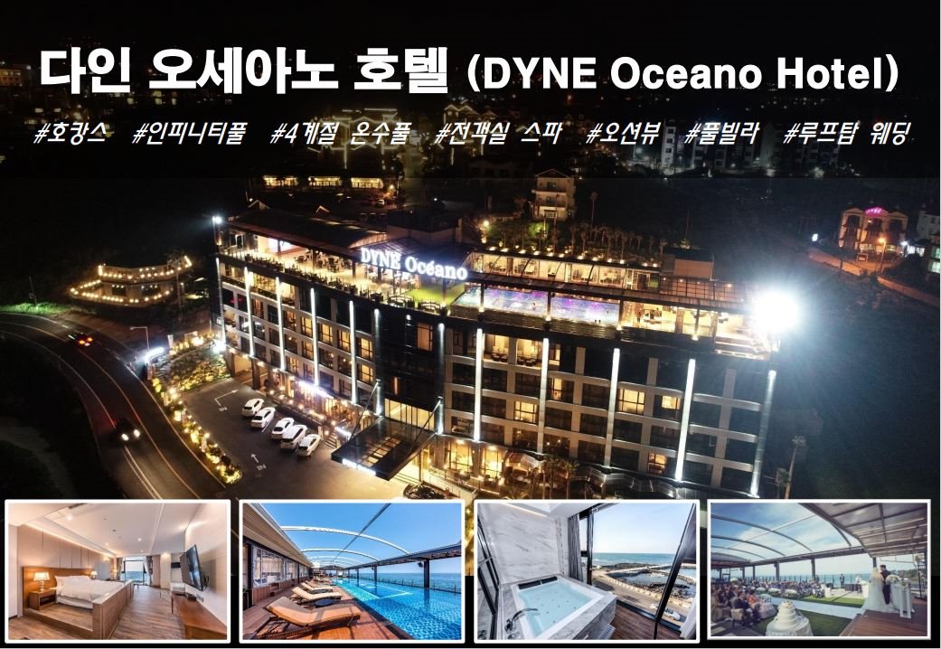 호텔만 사용하는 상품으로 1박/1객실(2인) 기준 입니다[호텔]√ 다인 오세아노 호텔[25년 4/1 ~ 7/17, 8/10 ~12/31] 2인실(디럭스 오션뷰) 이용시 2인 석식(BBQ) 제공] - 다인 라이브가든에서 흑돼지 BBQ 2인 메뉴 제공[제공품목: 흑돼지 오겹살&목살(360g) 전복 새우 소세지 된장찌개 쭈꾸미,돼지껍데기,버섯,양파]※ 성수기 기간 7/18 ~8/9 는 객실 2인 조식만 제공 됩니다√ 디럭스 룸[디럭스 오션 / 테라스 더블(펫) / 테라스 트윈 / 주니어 패밀리트윈(더블 더블)] - 디럭스 오션(더블 or 트윈) 기준인원 2인 / 최대 3인 - 테라스 더블(펫룸) 기준인원 2인 / 최대 3인 - 테라스 트윈(더블 싱글) 기준인원 2인 / 최대 3인 - 주니어 패밀리 트윈(더블 더블) 기준인원 2인 / 최대 4인※ 객실은 가능한 객실로 랜덤 배정입니다(펫룸 제외)√ 15:00 체크인 / 11:00 체크아웃ㅇ조식당 안내<안다미로>* 유아(36개월 이하) 무료가격 정상가 29,900원(성인) / 19,000원(소인)영업시간 07:00 ~ 10:20 (라스트오더 10;00)장소 1층 안다미로(로비 옆)※ 요금은 1박당 총 요금입니다. (1인 1실 및 2인 1실 요금 동일)※ 교통편 불포함 (개별이동)※ 고층 또는 기타 객실배정 관련 요청사항은 체크인시 프런트를 통해서만 신청가능합니다. (사전요청 불가)▶ 호텔 확약 여부는 예약 후 48시간 이내에 알려드리고 있습니다. (영업일 기준) ◀▶ 공휴일 등 특정일 기간에는 호텔 객실 상황에 따라 상품 가격이 변동 될 수 있습니다. (예약 시 안내) ◀