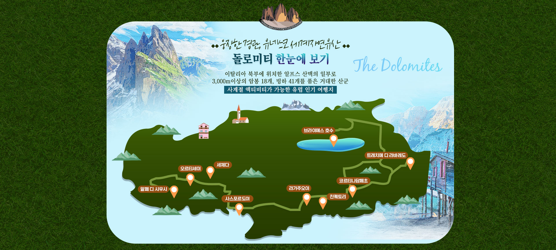 [돌로미티 전세기] 이탈리아 돌로미티 9일 #세상에서 가장 아름다운 자연건축물 #Easy 하이킹 #단 2회