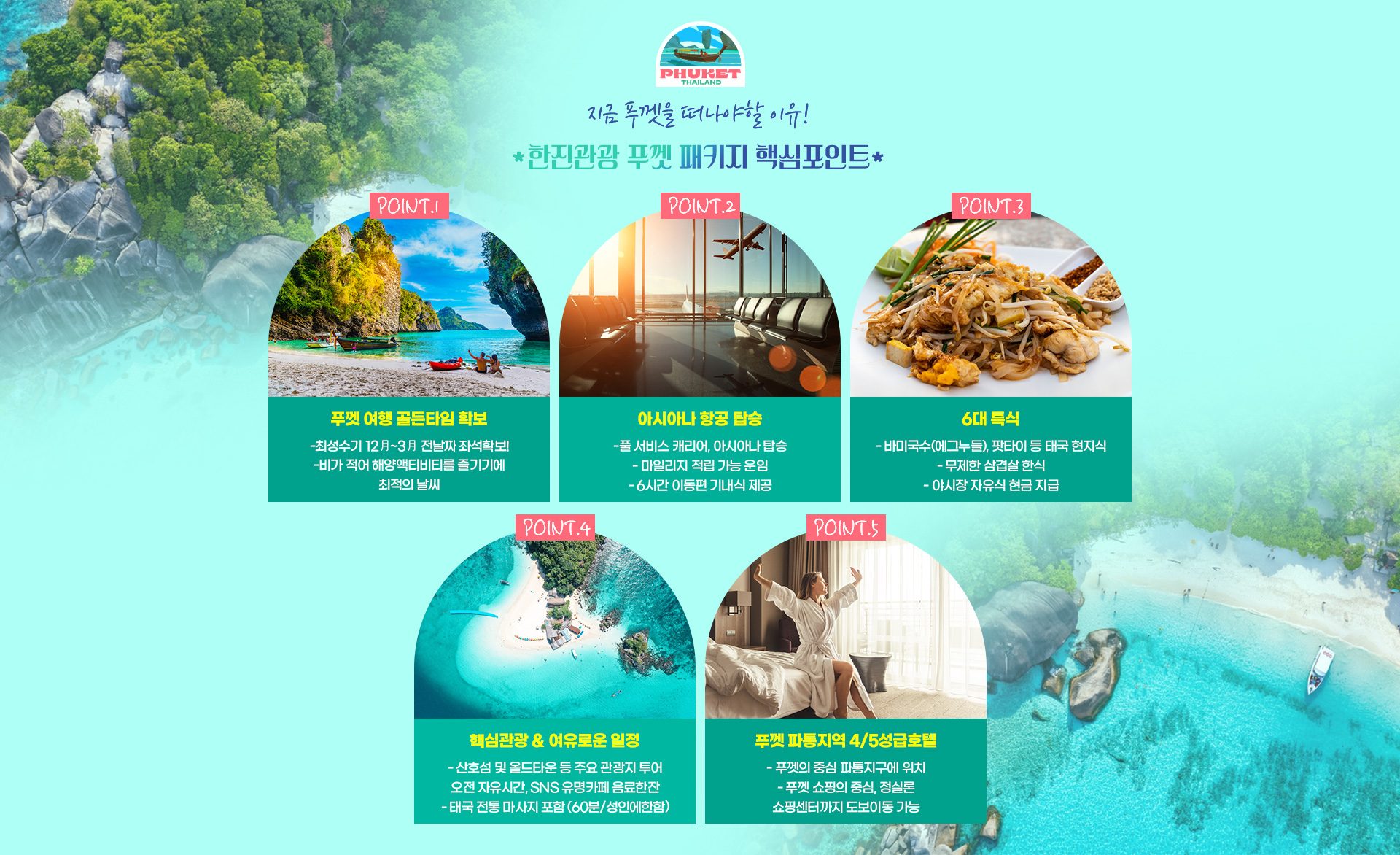 [아시아나]파도가 전하는 휴식, 푸껫 패키지 5일 [4성급호텔/마사지1시간/6대특식]